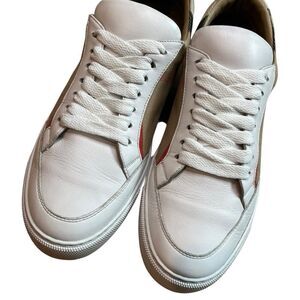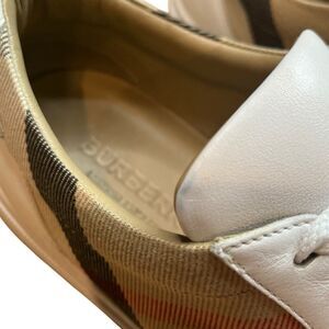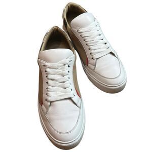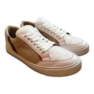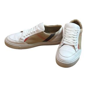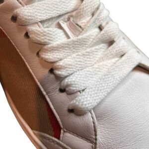 Burberry luxury brand women’s “Check & Leather” lace up sneakers in a US size 8. EU 38.
