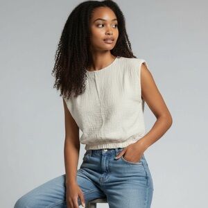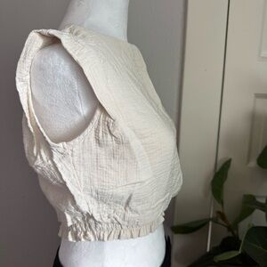 A New Day Cream Smocked Crop Blouse Sleeveless
