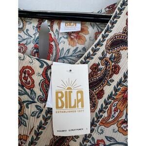 Bila NWT Midi Floral Crinkle Dress Lg Cottagecore Boho Festival Peasant Tiered