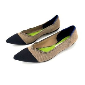 Rothy's Retired THE POINT Pointed Toe Flats DUNE CAP TOE Size 10 Black Tan