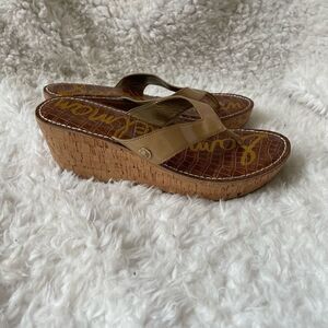 Sam Edelman Romy Khaki platform wedge thong sandals size 10M