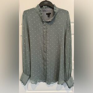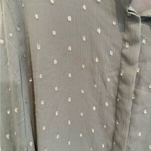 Ann Taylor Clip Dot Sheer Grey Metallic Silver Blouse Size Xl Long Sleeves