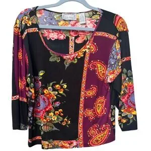 Keywords: floral top, paisley top, vintage top, long sleeve top, colorful top, retro top, womens top, blouse, floral blouse, paisley blouse, vintage blouse, Jane Ashley, 90s top, 80s top