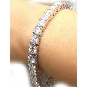 NEW 4.6 Ct Moissanite Tennis Bracelet 3mm 7inch adjustable chain. 18K White Gold Over 925 Sterling Silver. Round cut. Excellent cut, VVS1. Breathtaking and sparkles from every angle! Its authentic and tests positive on a diamond tester. Great for an Anniversary gift, wedding gift, Christmas gift, Birthday gift. Comes packaged nicely in a led light up jewelry box.