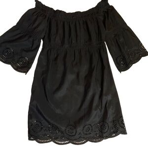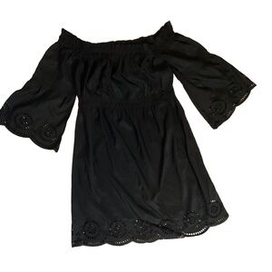 Venus Black Off-The-Shoulder Bell Sleeve Eyelet Dress Women's Medium /Large