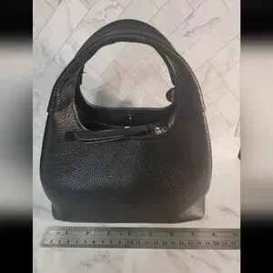 Herringbone handwoven front details accent the sophisticated silhouette in rich pebbled leather. It’s the perfect size to carry all your essentials. Short handles make it easy to pick it up and go on busy days.