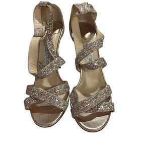 Jimmy Choo Antique Gold Glitter Strappy Sandal Heels