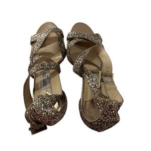 Jimmy Choo Lottie Antique Gold Glitter Heels Strappy Sandals Size 38.5