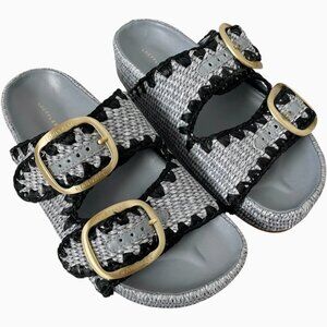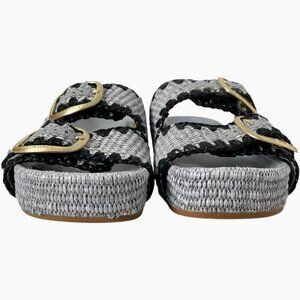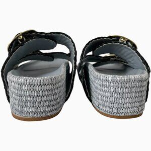 Loeffler Randall Theo Sandal 7 Blue Black Raffia Woven Platform Slide