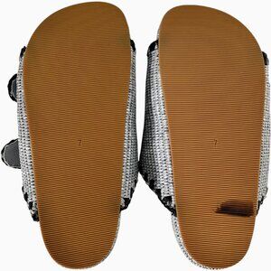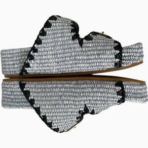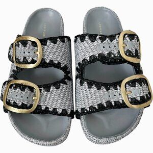 Expertly crafted by Loeffler Randall, the Theo sandal combines modern texture with signature polish. The upper features intricately woven raffia in blue and black tones, offering a structured yet lightweight feel perfect for warm-weather wear. Dual adjustable straps finished with oversized gold buckles lend a refined contrast while ensuring a secure, comfortable fit. The slightly elevated platform silhouette adds subtle lift without sacrificing ease. Styled effortlessly with linen dresses, cropped denim, or vacation looks, these sandals balance casual luxury and contemporary edge—perfect for summer days, resort escapes, or chic weekend outfits.