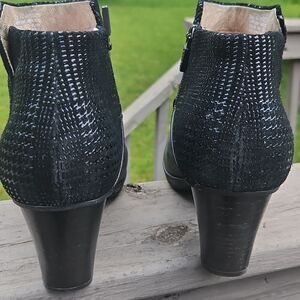 Dansko boots, leather booties, black ankle boots, size 40, comfort shoes, heeled booties, supportive boots, fall fashion, zip-up boots, stretch shaft boots, work shoes, minimalist style