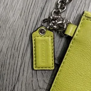 coach wristlet, coach clutch, y2k purse, mini purse, lime green bag, bright purse, coach leather, small handbag, y2k accessory