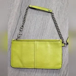 Coach Lime Green Leather Wristlet Chain Strap Clutch Y2K Small Purse