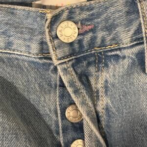 Hidden button fly. Factory distressing at the pockets. Denim patches in various shades of a light and medium wash. Will hit at about the ankle depending on height (see measurements below).