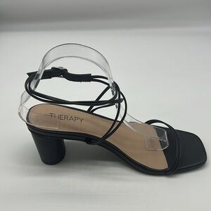 THERAPY - Black Strapy Open Toe Ankle Adjustable Strap Lightweight Heels Size 8