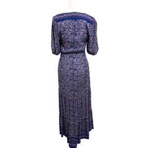Faherty Orinda Maxi Dress Blue Floral Button Front Prairie Womens Size M