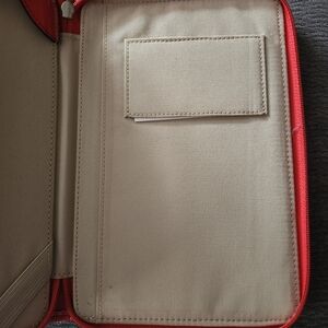 Coach Tan and Coral Signature I Pad Case. 8 3/4 by 5 1/2 In