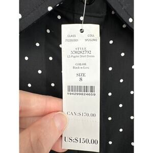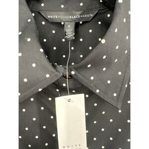 WHBM Dress Womens 8 Black Mini Polka Dot Poplin Shirtdress Stretch Belted