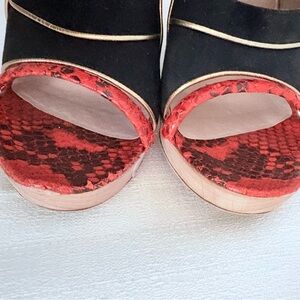 Red snakeskin accent at toe/heel