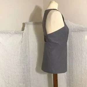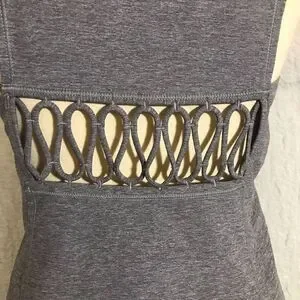 Solid gray tank top with open loop detail back. Pre-owned in good condition. Please refer to pictures for best description and condition verification.