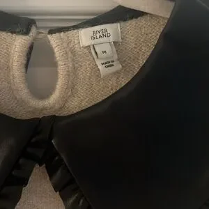 River Island Cream Sweater with Black Leather Ruffled Collar