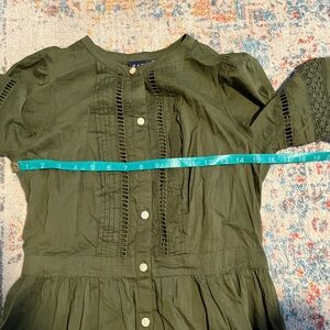 Gap olive green cotton eyelet midi button-down dress