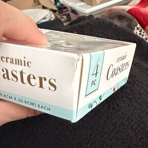 Set of holiday-themed coasters with festive designs. Perfect for seasonal decor.