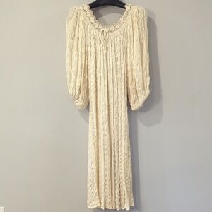 Vintage Dress Midi 3/4 Sleeve Cream Made in Greece Greek Goddess