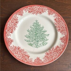 Royal Stafford Green Christmas Tree DINNER Plates with Red Border New Set of 2