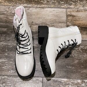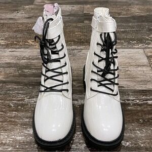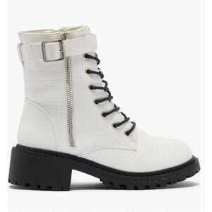 Nicole Miller Boots New York Snakeskin Combat Moto City White Size 7 NEW