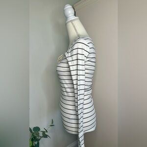 Abercrombie & Fitch Lace Up Striped Ribbed Top in White and Black Size Small