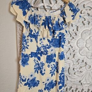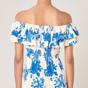 Sugarlips Azure Kona Blue and Cream Floral Ruffled Romper Size L