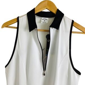 Callaway Sleeveless Golf Dress White Black Trim Zip Front Athletic