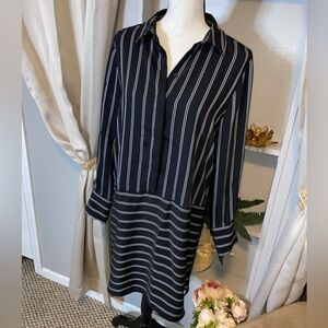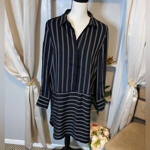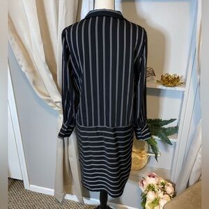 Cremieux size Small EUC White Black Pinstriped Collard Shirt Long Sleeve Dress