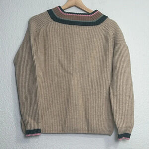 Madewell V Neck Ribbed Tipped Forest Wool Pullover Sweater Womens Size XSmall