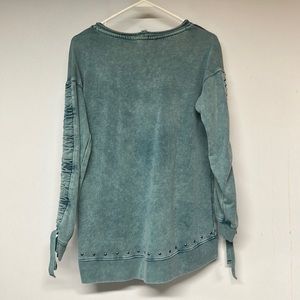Lightweight- ruched sleeves with tie on ends - studs along waistband