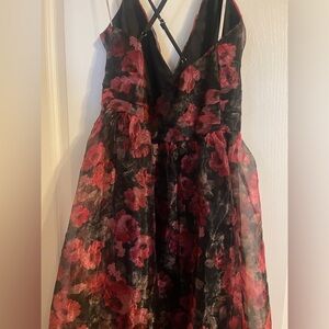 Pre Loved in Excellent Condition Lulus Simply Divine Black and Red Floral Print Organza Maxi Dress M Bridal