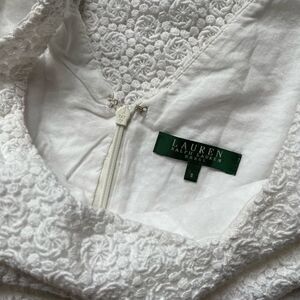 Lauren- Ralph Lauren Women’s White Dress size 8. V-Neck and Crocheted details.