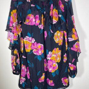 Joie Women's Long Sleeve Floral Black Silk Tunic Blouse XS-(M) Oversized!