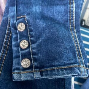 Artka - unique blue jeans - low rise - lots of buttons - embroidery- size 25