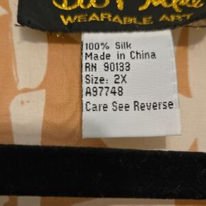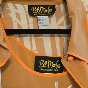 Embrace the casual elegance of the Bob Mackie blouse, 100%silk, showcasing a harmonious blend of tan and white hues. The organic stripe pattern lends a natural charm, while the relaxed fit ensures comfort throughout the day. Perfect for laid-back occasions, this blouse is a versatile addition to any wardrobe.