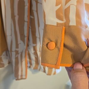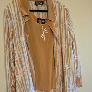 Vtg Bob Mackie Tan and White Blouse with Relaxed Fit. 2 Piece Set With Tank Top.