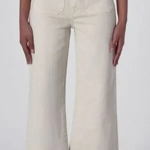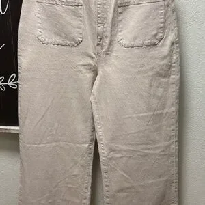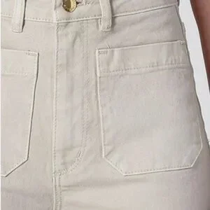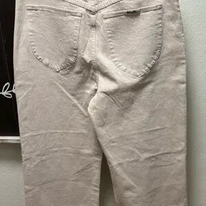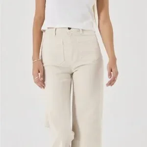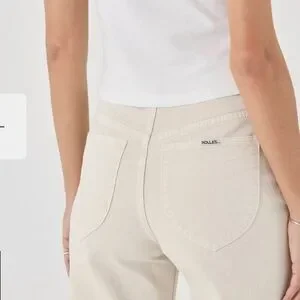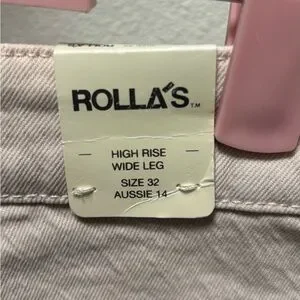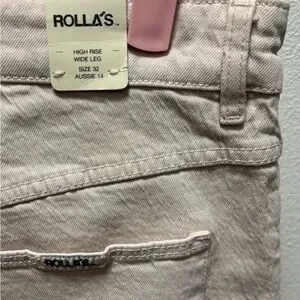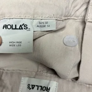 NWT Women's 32 Rolla's x Anthropologie Sailor High Rise Wide Leg Jeans in size 32. These jeans are designed for women and feature a wide-leg style with a high rise waist. The beige color adds a trendy touch to the classic balloon silhouette. Made with stretch fabric, these jeans offer comfort and flexibility for a stylish and functional wardrobe staple. Complete with pockets for added convenience, these jeans combine fashion and functionality in one versatile piece.