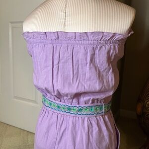 Lilly Pulitzer Embroidered Romper NWT lavender with intricate details, has pockets and removable tie for waist size xxs brand runs on larger end