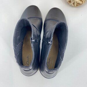 Clarks Cora Derby Leather ankle Black Ankle Boots SZ 10, Note that sz shows sz 11 inside the boot but I wear sz 10 med and this fit perfectly so I will list as sz 10. details: round toe, side zip closure, lightweight, cushioned footbed, shock absorbing, microfiber lining. Condition is like brand new.