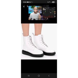 Alexander McQueen Boots Women's 10.5 White Hybrid Lace Up Combat Leather