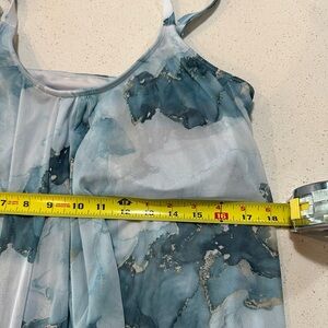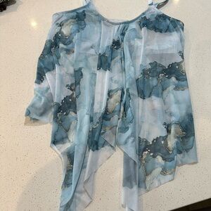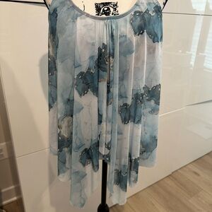 This elegant women's top features a beautiful watercolor design in shades of blue. Perfect for any occasion, it offers a stylish and comfortable fit.