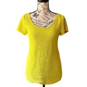 Bring bold, retro energy to your wardrobe with this Ann Taylor neon yellow crochet top, a vibrant statement piece that channels Y2K and 80s/90s vintage vibes. Featuring a semi-sheer crochet overlay and soft knit lining, this top combines breathable comfort with striking style. The short sleeves and scoop neckline offer a flattering feminine silhouette — perfect for layering or standing out solo.