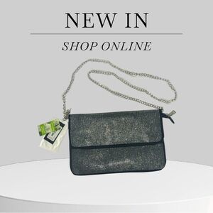 Reversible side Badgley Mischka clutch with removable crossbody chain!