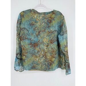 HAMPTONITE NEW YORK Silk Marble Print Bell Sleeve V Neck Blouse Top XL